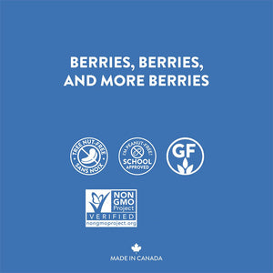 Gluten-free Oats, Tapioca fibre, Sunflower seeds, Brown rice, Vegetable glycerin, Rice Syrup, Rice Protein, Rice flour, currant, Sunflower oil, Apple Juice Concentrate, Cranberry, Blueberry, Natural flavour, Fruit and vegetable blend (apple, onion, broccoli, kale, cranberry, raspberry), Agar, Sugar, Salt.