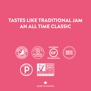 Tastes like traditional jam with added superfood of chia seeds and 50% less sugar with only 2 grams of sugar and 4 grams of fibre per serving. Amazing!