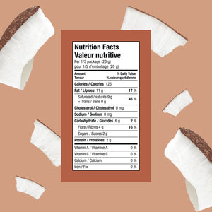 Coconut, Banana, Sunflower Seeds, Coconut Sugar, Cacao Powder, Ground Vanilla Bean, Vanilla Extract, Cinnamon, Salt.
